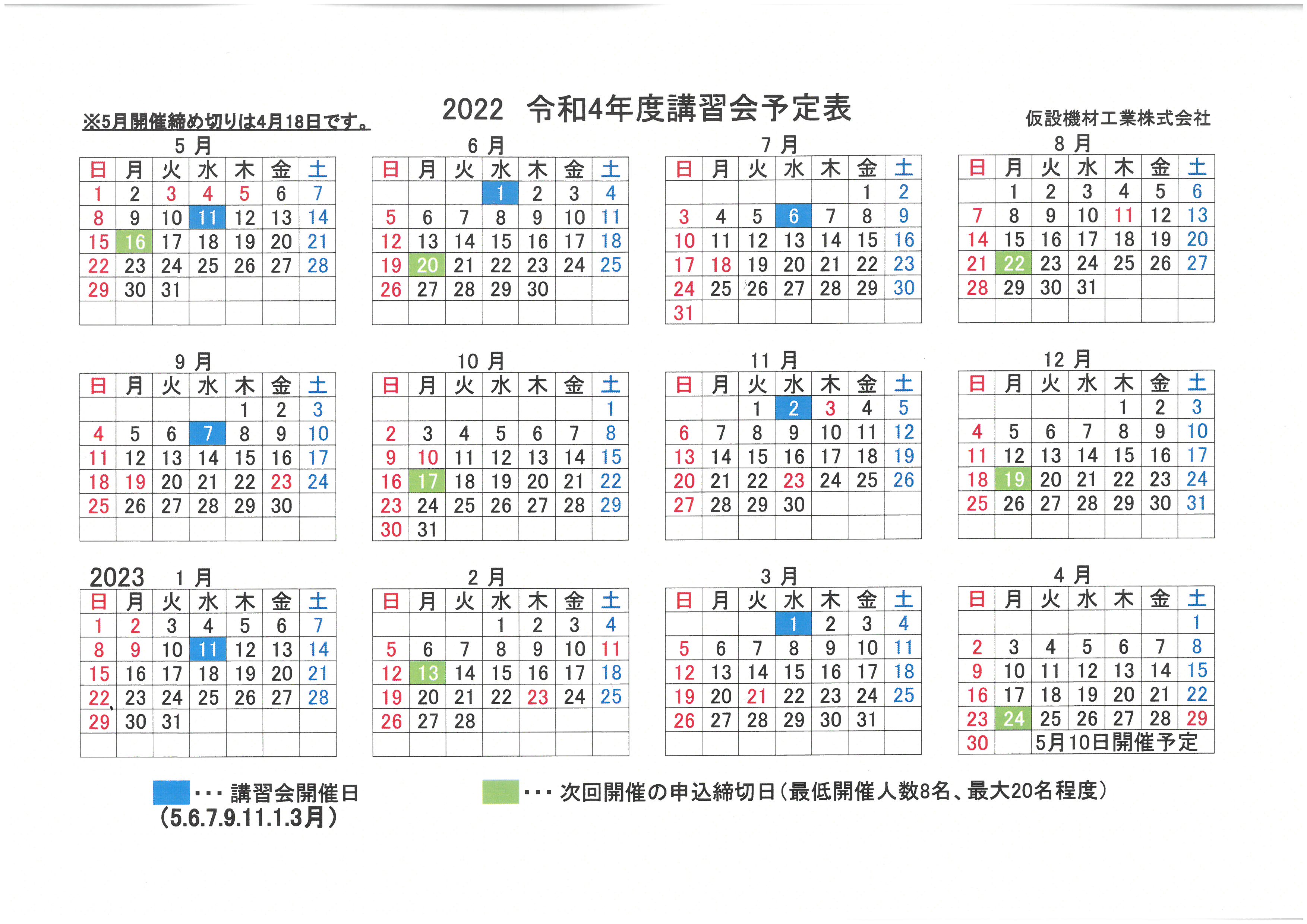 年間講習予定・申込締切日